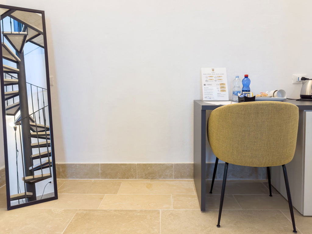 La soluzione ideale per un soggiorno indimenticabile. Questa camera, situata nell’edificio “Castello” offre un ambiente elegante e confortevole, perfetto per relax e tranquillità. Il punto di forza è il terrazzo privato arredato che permette di godere di momenti di relax all'aperto, a cui si accede tramite la caratteristica scala a chiocciola di ferro battuto.